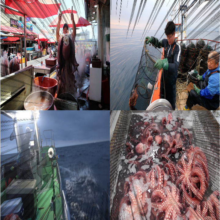 강원도 속초항, 이른 새벽 문어잡이를 떠나기 위한 준비로 분주하다. 동해에서 이뤄지는 문어잡이 방식에는 크게 두 가지가 있는데, 낚싯바늘에 인조 미끼를 달아 문어를 낚는 연승과 통발을 이용한 통발 조업이다. 연승어법의 경우 어장에 낚싯줄 던져 놓고 문어가 걸리길 기다린다. 보통 한 마리씩 잡기 때문에 문어를 가장 상처 없이 잡는 방법이라고 한다. 반면, 통발 어업의 경우, 어장에 미리 통발을 투망해 놓은 후 약 일주일 후 걷어 올리는 방식이다. 한 번에 투망하는 통발의 개수는 300여 개. 인조 미끼를 사용하는 연승과 달리 통발은 문어를 유인하기 위해 미끼로 정어리를 사용한다. 산란기에 들어간 문어들은 더 깊은 바다로 들어가 예전만큼 조업량이 많지 않지만 새벽마다 늘 기대감을 안고 어부들은 바다로 나아간다.