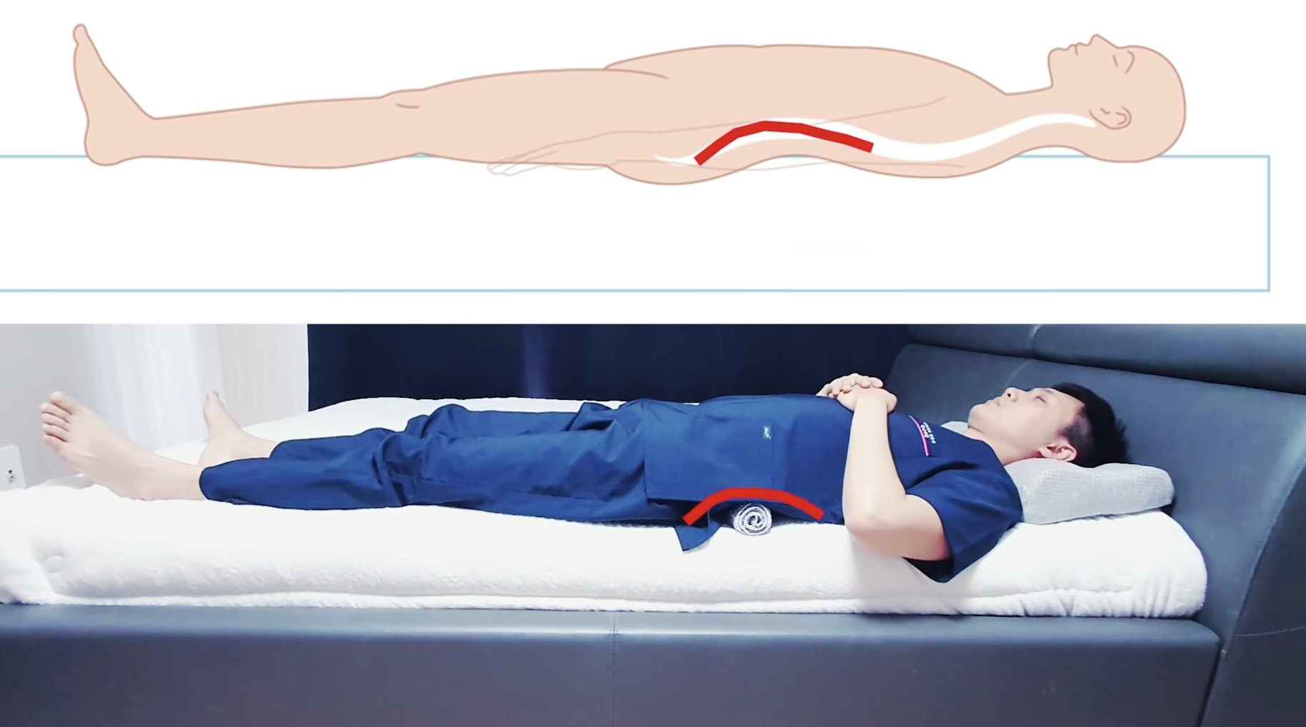 이 방법은 물리치료사들이 적극적으로 추천하는 방법입니다. 방법 자체가 간단하여 집에서도 손 쉽게 이용할 수도 있습니다. 수건을 돌돌 말아서 허리에 두게 되면 U자 곡선을 유지할 수 있습니다. 아래의 사진에서 보이는 자세는 허리 디스크에 부담을 줄일 수 있으며 디스크 회복에도 도움이 됩니다.