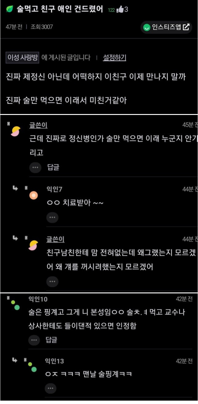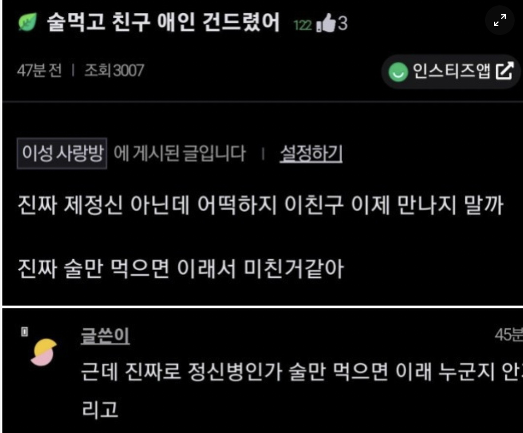 술 먹고 친구 애인이랑..