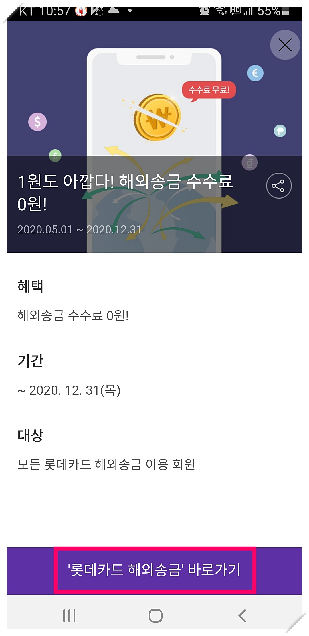롯데카드 해외송금이 너무나 메리트가