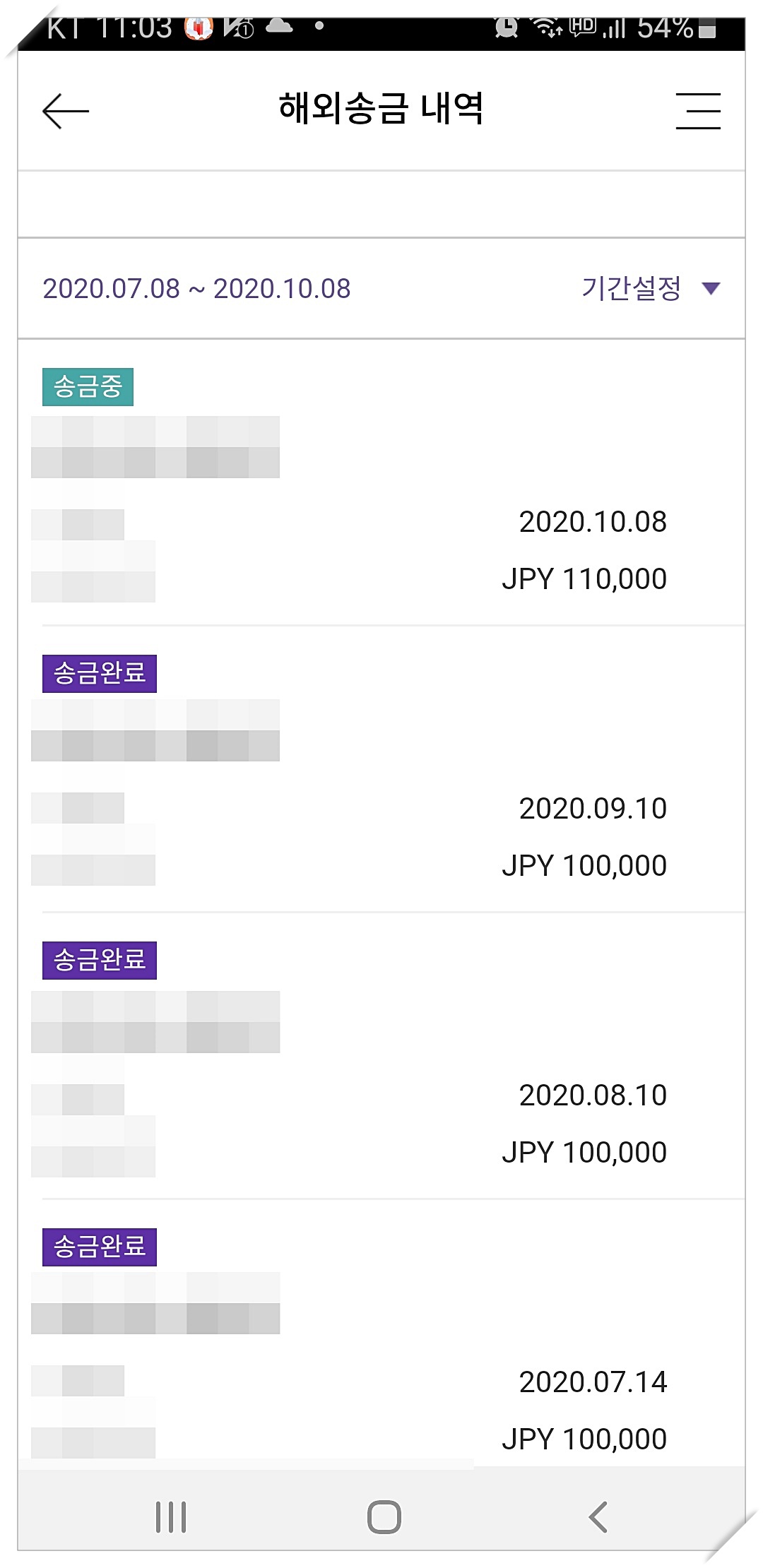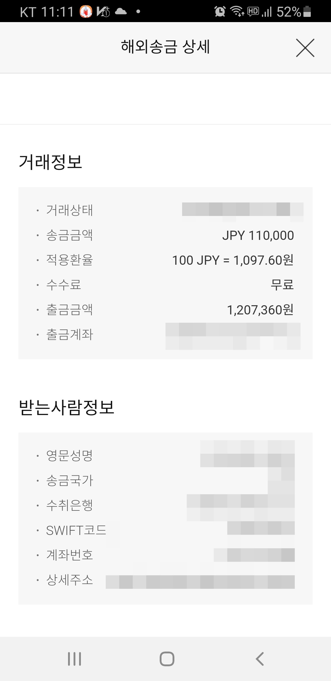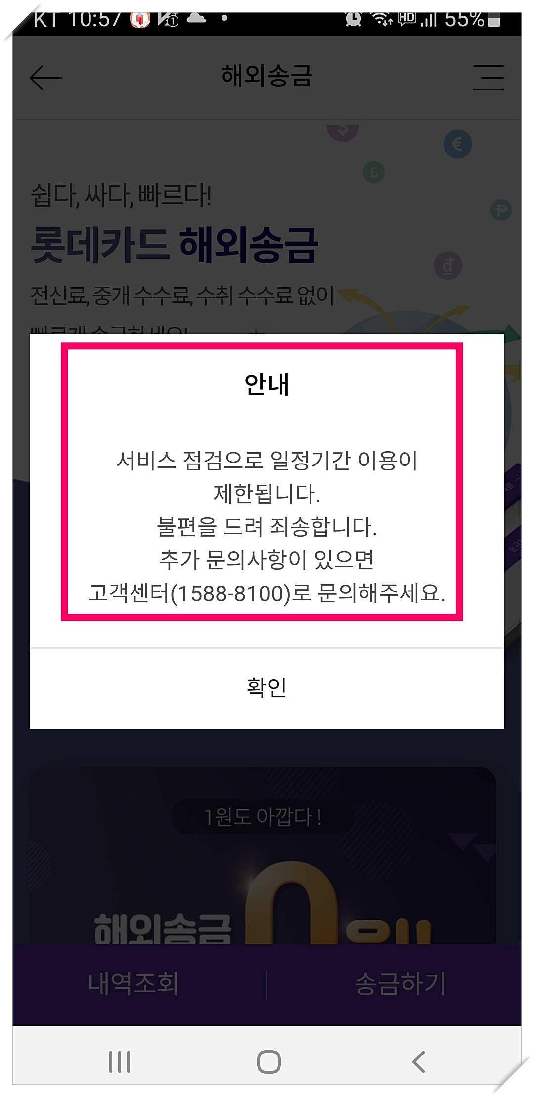 롯데카드 해외송금 항목을