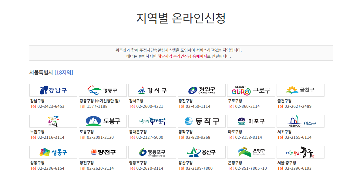이러한 방법이 있다보니, 각 지역에 맞는 주정차단속알림시스템 홈페이지에서 확인하고 신청할 수 있습니다. 모든 지역이 통합되는 것이 아니라 본인이 거주하는 지역에 맞게끔 알림 서비스를 제공한다는 점입니다.