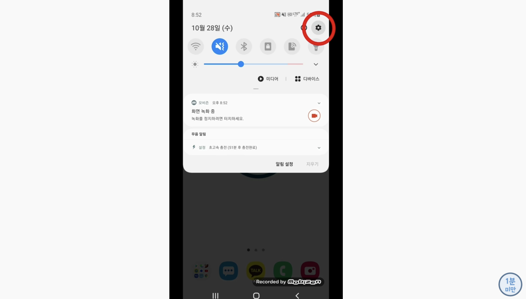 1. 스마트폰 상단에서 스크롤을 내려서 설정값을 선택합니다.