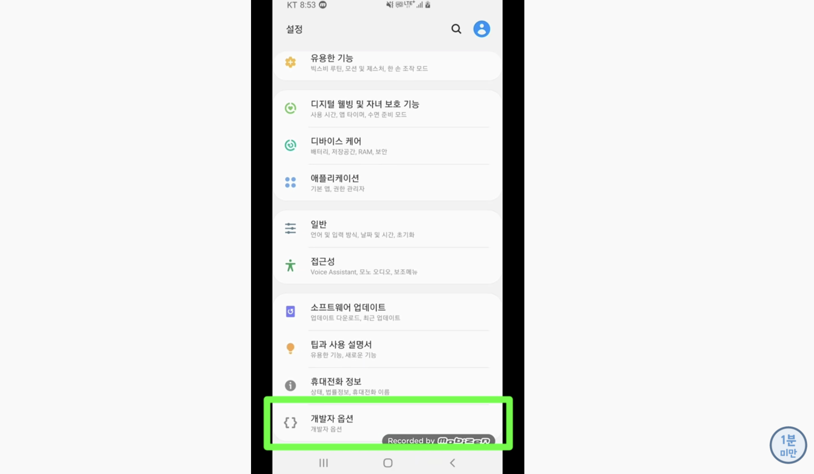 5. 다시 설정값으로 들어가게 되면 휴대전화 정보 밑에 "개발자 옵션"이라는 항목이 뜨게 됩니다.
