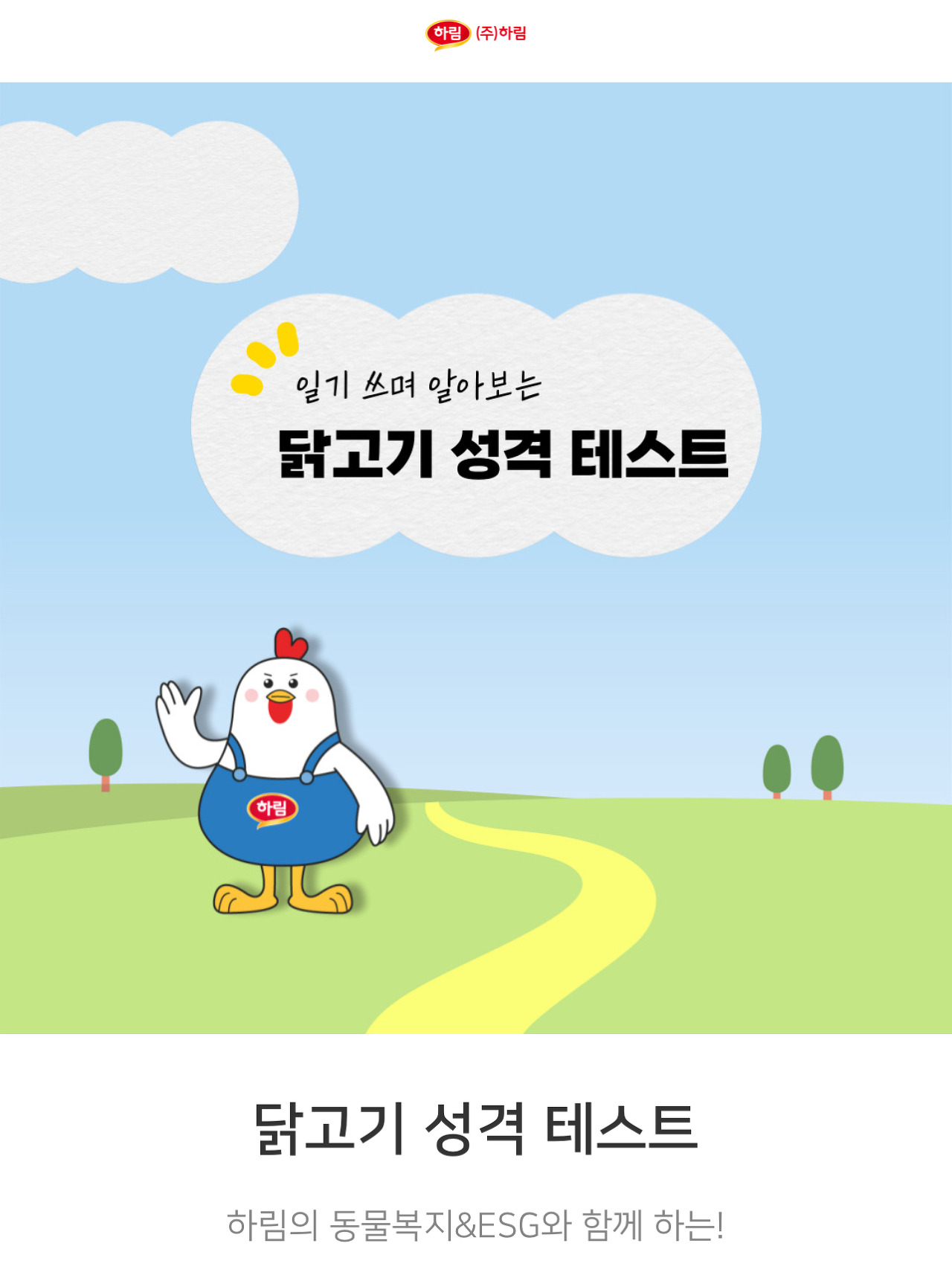 본인이 좋아하는 타입, 싫어하는 타입을 12가지 질문을 통해서 닭고기에 대한 애정을 확인할 수 있는 테스트입니다.