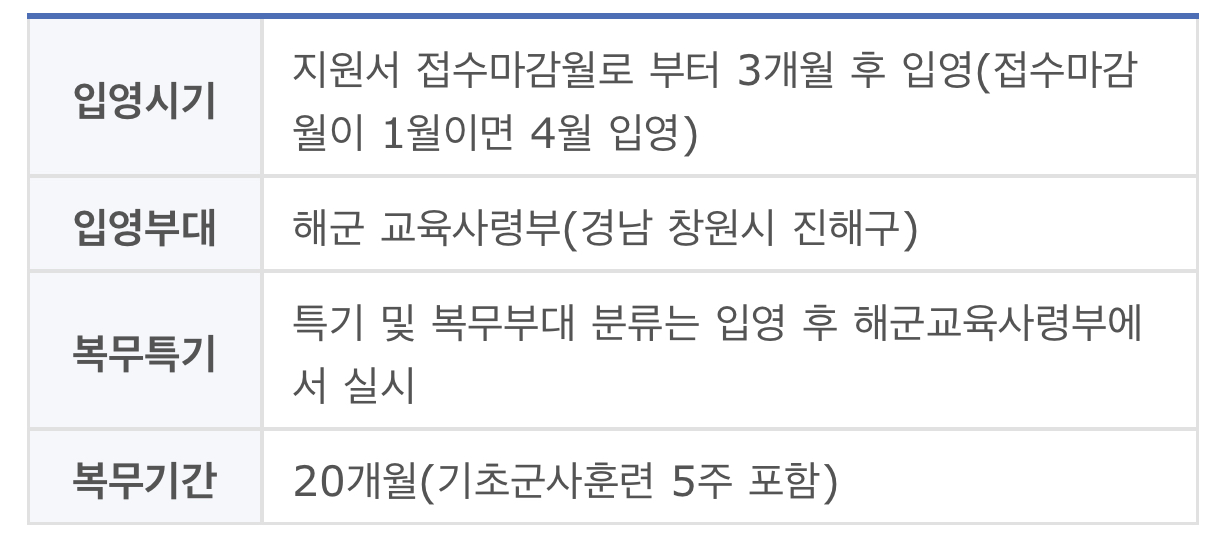 특기 및 복무부대 분류는 입영 후 해군교육사령부에서 실시