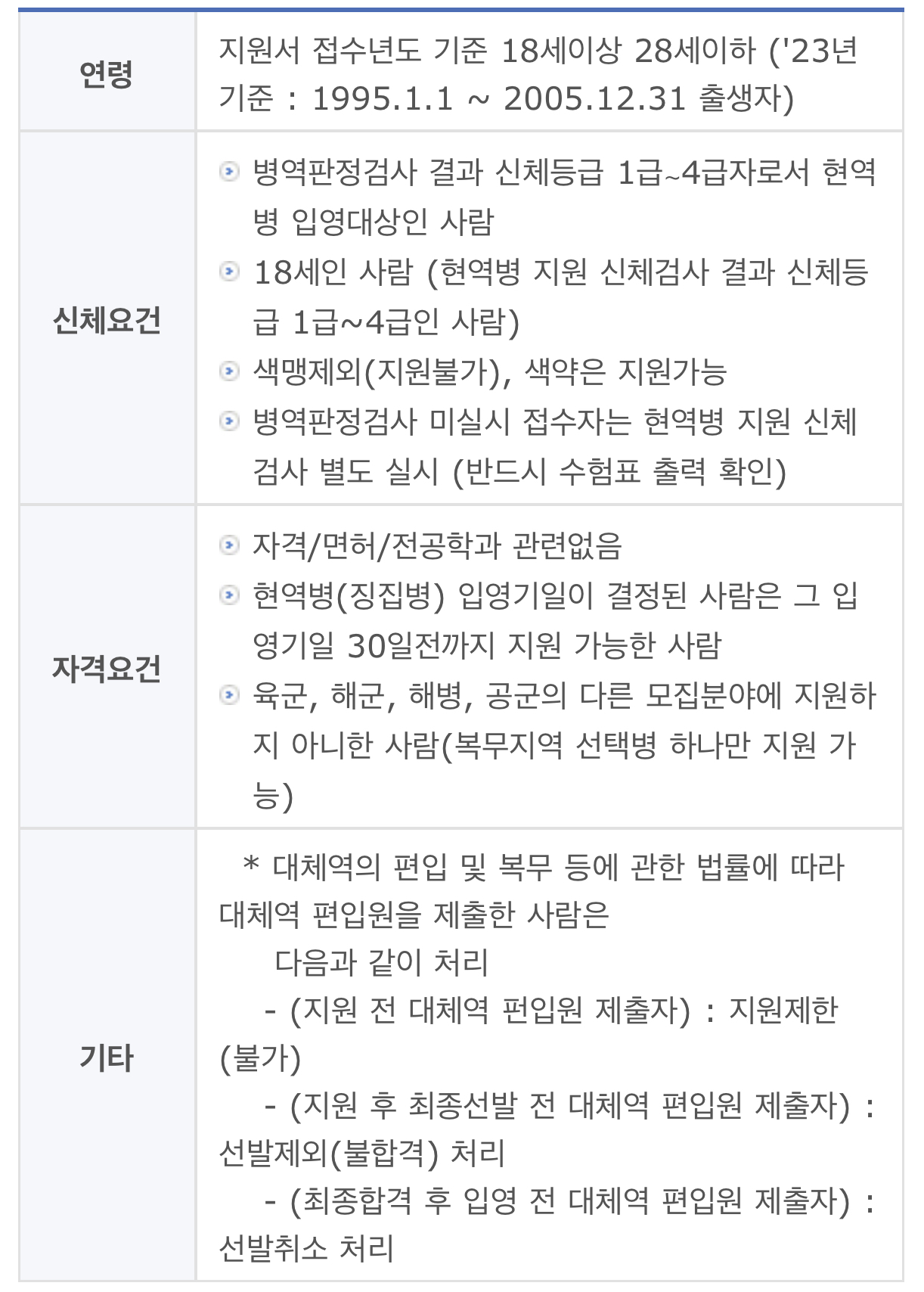 ➡️병역판정검사 미실시 접수자는 현역병 지원 신체검사 별도 실시 (반드시 수험표 출력 확인)
