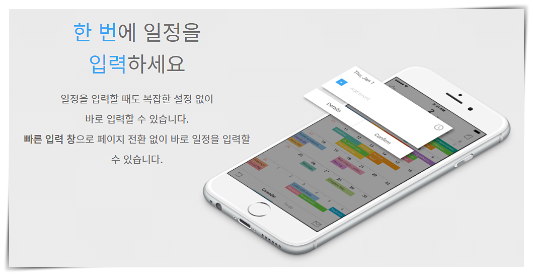 2. 일정을 입력할 때도, 설정 및 입력창 페이지가 전환없이 바로 일정을 입력할 수 있습니다.