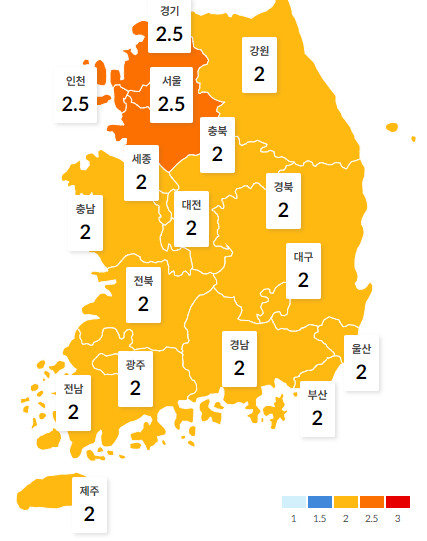 | 경기도 | 강원도 | 충청남도 | 충청북도 |