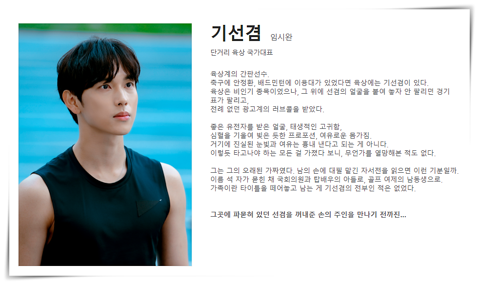 숙명적으로 앞만 보고 달려가는 남자, 기선겸은 단거리 육상 국가대표입니다.