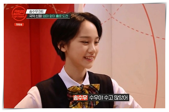 송수우씨는 초등학교 6학년때부터 국악을 시작했습니다. 15년도 LG드림페스티벌 국악부문에서 금상 수상한 이력이 있었습니다. 또한 전국노래자랑, 국악한사당 등에서 우수상과 국악신동이라는 명칭을 얻게 되었습니다. 그 외에도 다양한 수상이력이 있습니다.