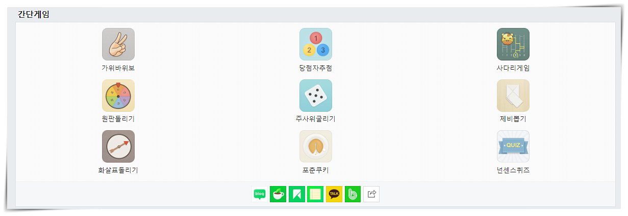 화살표돌리기, 포춘쿠기, 넌센스 퀴즈