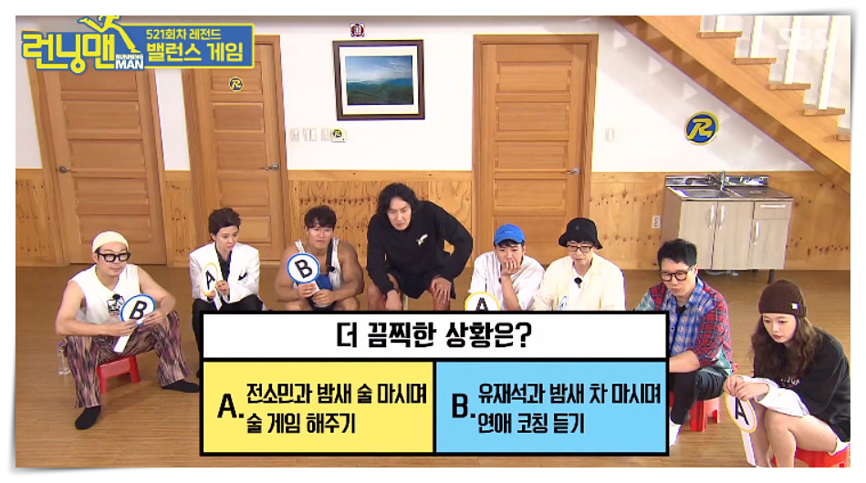 런닝맨 밸런스 게임 질문에 대해서 알아보도록 하겠습니다. 런닝맨 내에서도 술게임으로 유명한 밸런스게임을 진행했던 적이 있었습니다. 저 역시도 해당 회차를 보면서 웃었던 적이 많았습니다. 자세한 내용은 아래의 링크를 통해서 알아보도록 하곘습니다. 정답은 질문을 먼저 보여드리고 사진으로 바로 확인할 수 있습니다.