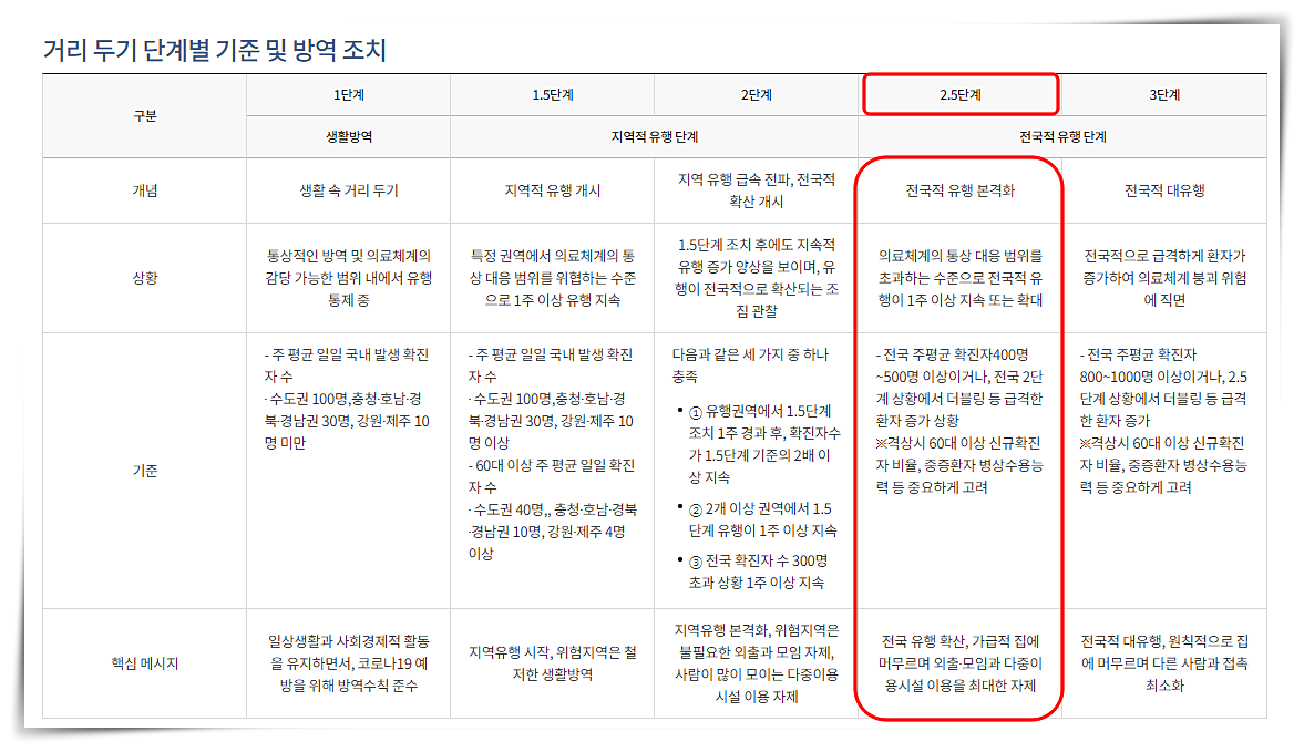 사회적 거리두기 2.5단계에 대한