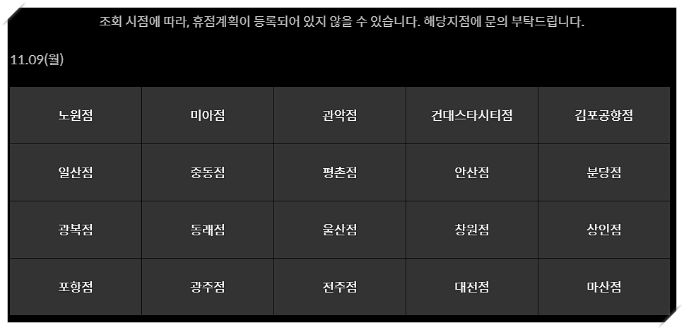 11월 휴무일에 대해서