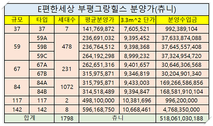 E평한세상 부평 그랑힐스 분양가 및 분양정보 공유해드려요