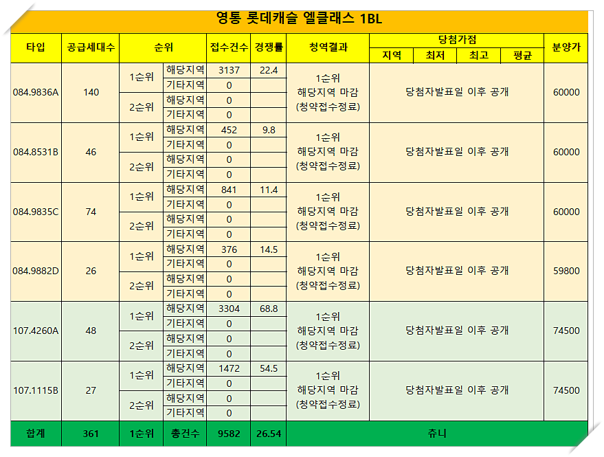 영통 롯데캐슬 엘클레스 분양가 및 1순위 청략 경쟁률 공유해드립니다