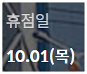 10월달 휴무일은 10월 1일(목)입니다.