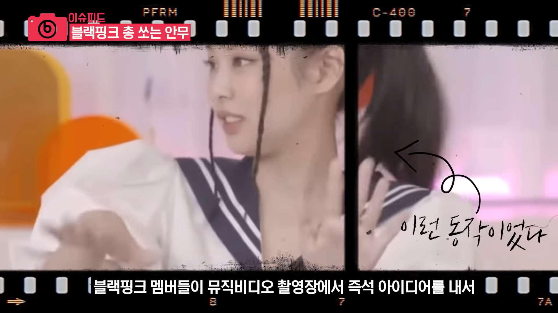 블랙핑크 뚜두뚜두의 상징인 총 쏘는 안무, 그런데 이 총도 원래는 없었다고 합니다. 수정 전 안무에선 아예 손을 총 모양으로 만들지 않죠. 뮤직비디오 촬영 날까지도 총이 없는 버전이었으나 블랙핑크 멤버들이 뮤직비디오 촬영장에서 즉석 아이디어를 내서 총 모양으로 촬영을 해버렸다는데요. 뚜두뚜두라는 제목을 생각하면 총을 쏘는 게 저절로 떠오르는데 하마터면 총 없는 뚜두뚜두를 볼 뻔했네요.