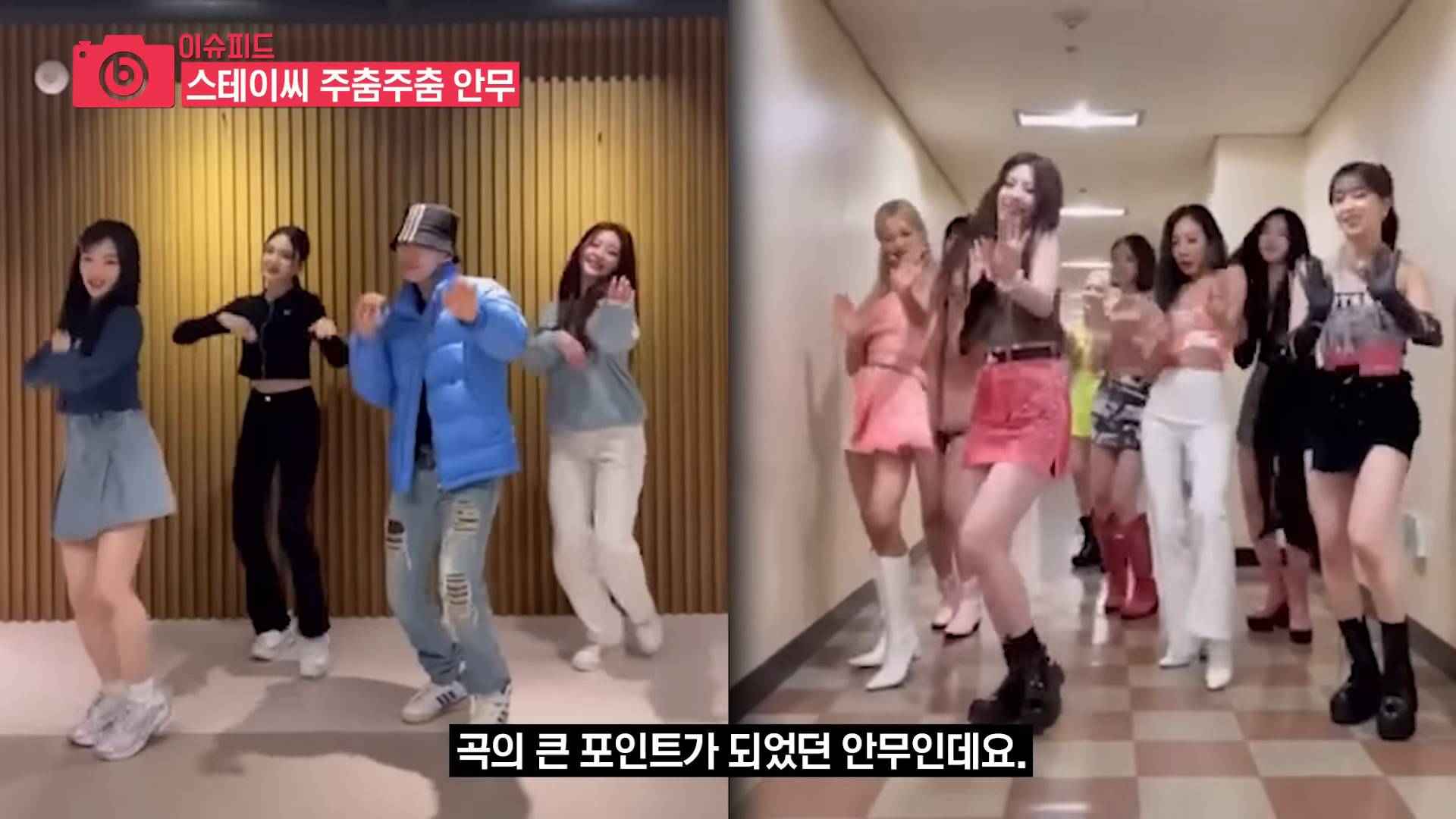 스테이시 런투유에서 가장 많은 사랑을 받았던 주춤주춤 안무,이렇게 챌린지 영상까지 쏟아질 만큼 곡에 큰 포인트가 되었던 안무인데요. 수정 전 안무도 정말 많았습니다. 배를 쓰다듬는 안무에서부터 손가락으로 니트를 표현하는 안무 단순하게 골반을 흔드는 안무까지 다양한 후보가 있었는데요.