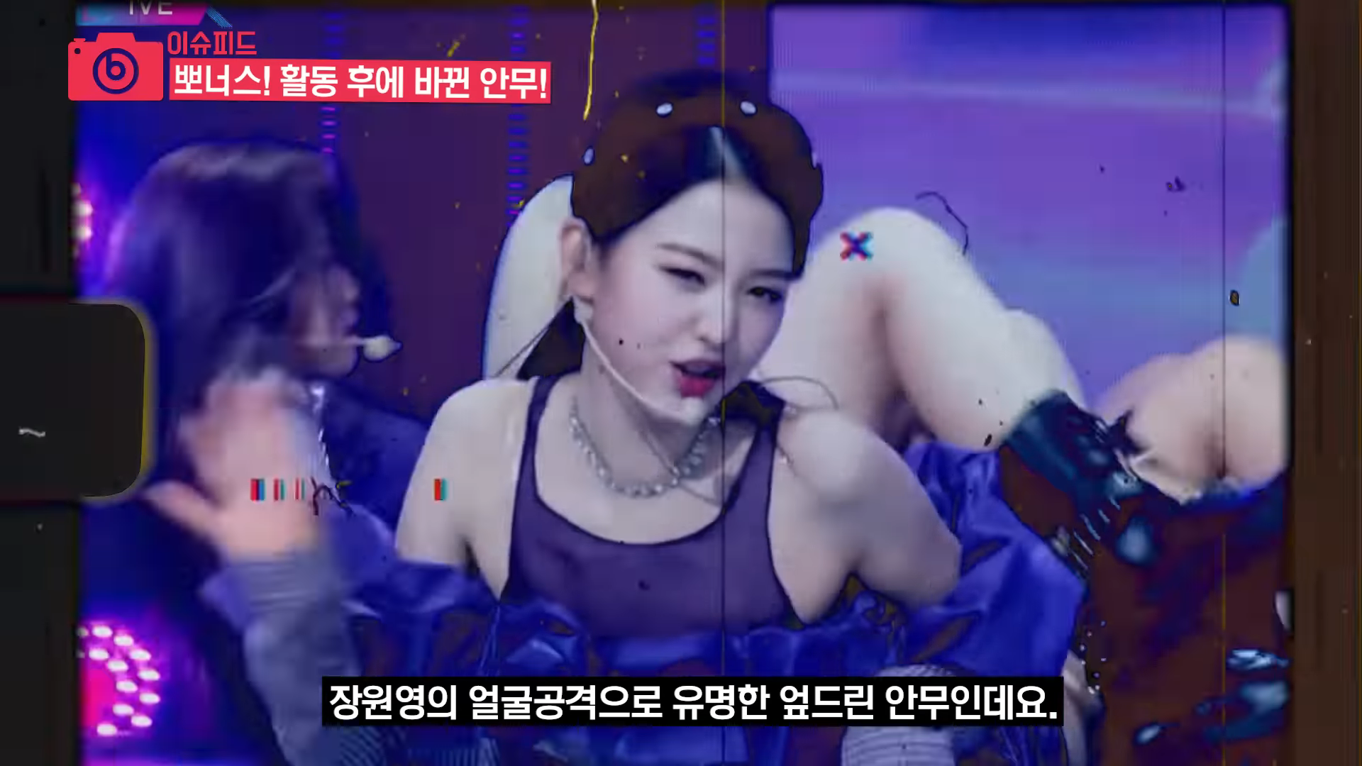 앞서 설명한 안무들과 달리 활동이 끝나고 바뀐 안무도 있습니다. 장원영의 얼굴 공격으로 유명한 엎드린 안무인데요.