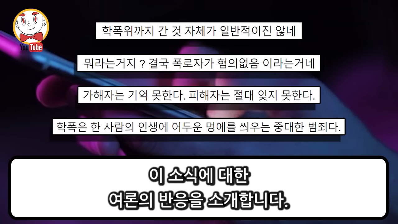 동창 측과 다시 만나서 사과까지 할 정도로 잘못한 부분이지만 폭로자의 폭로 내용이 100% 전부 맞는 내용은 아니며 분명 과장되거나 허위사실에 해당되는 부분이 있기 때문에 이러한 억울함을 해소하고자 폭로자를 형사 고소했다고 밝혔습니다.
