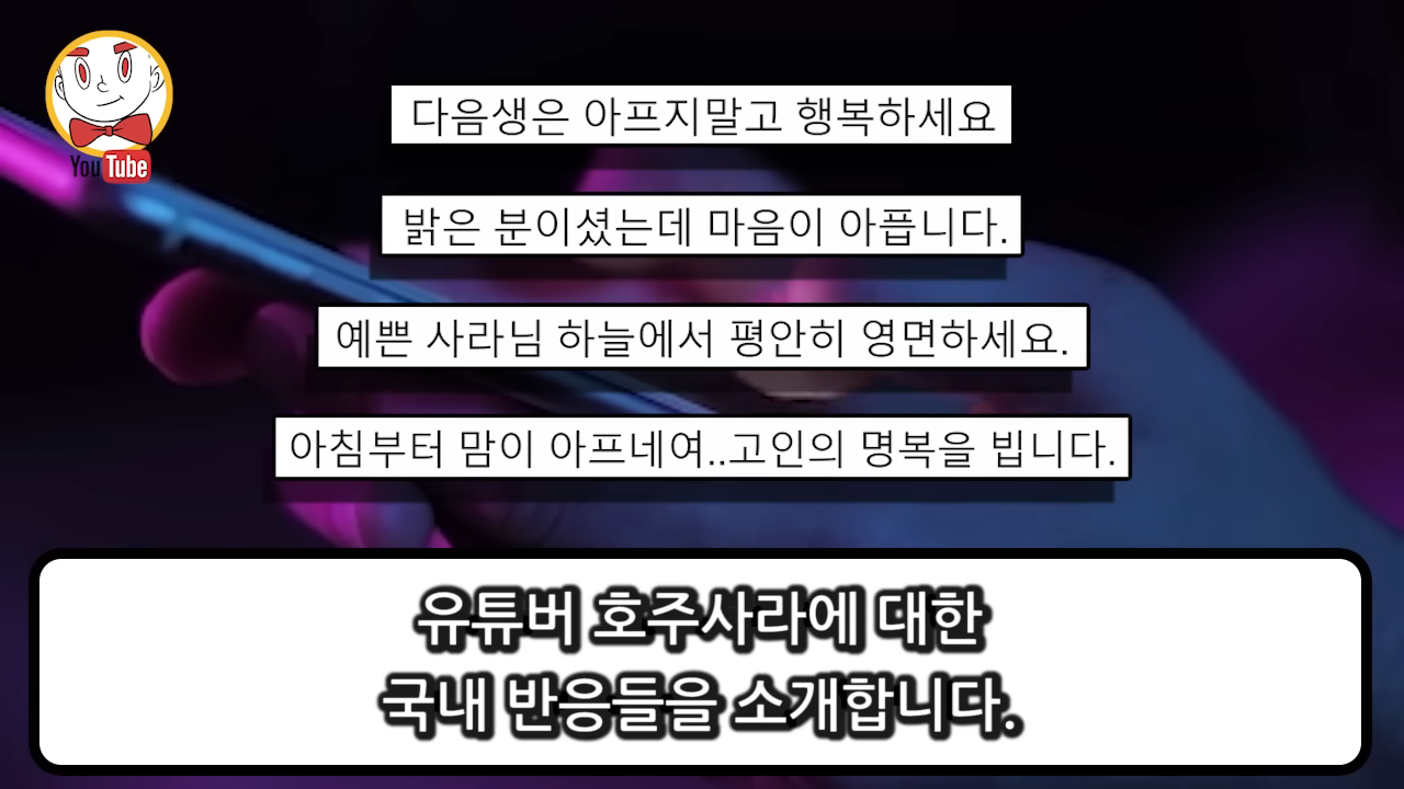지난 2022년 3월 호주사라는 목 뒤쪽과 흉부 통증을 호소했고 검사 결과 급성 골수성 백혈병 진단을 받았다고 합니다. 이후 유튜브 활동을 중단하며 투병 생활에 전념했고 종종 투병 생활 속 근황을 알리며 밝은 모습을 보여줬으나 결국 최근 세상을 떠났다는 안타까운 소식이 전해지게 됩니다.