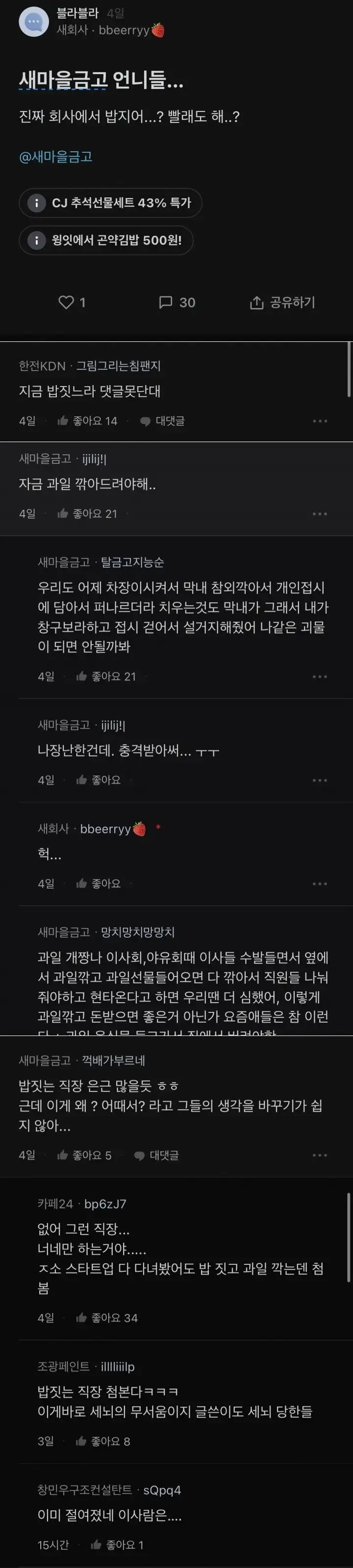 새마을 금고 여직원 취사 논란