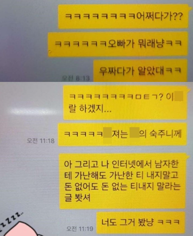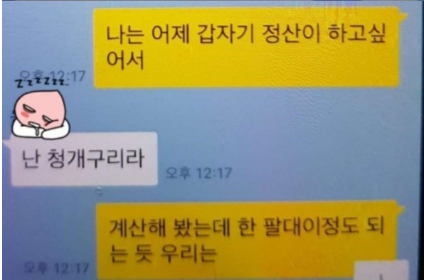 하지만 친구와 카톡을 나눈 내용을 살펴보면 무척이나 충격적이다.