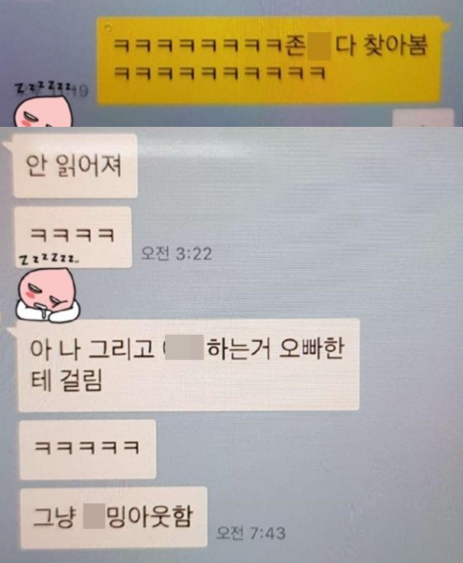 큰 충격을 받은 A씨는 하루가 지나자 여자친구에게 이별을 선언했으나 카톡 내용을 봤다고 하진 않았다고 한다.