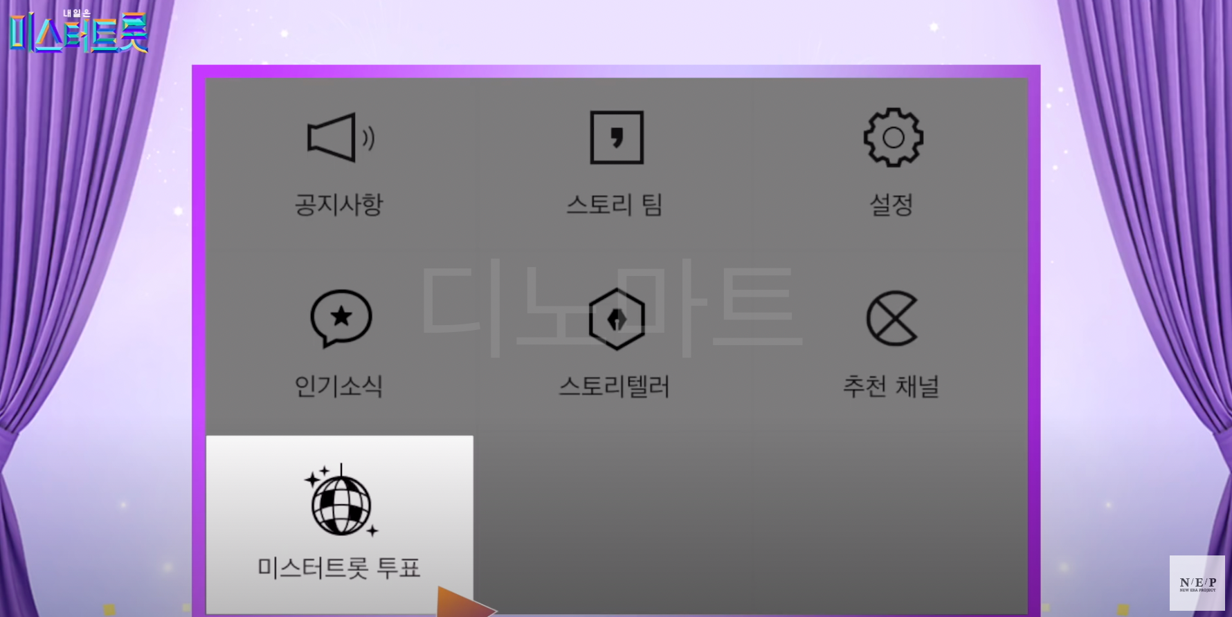 3. 3개의 점에 보이는 항목 중 "미스터트롯2 투표" 배너를 선택합니다.
