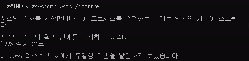 윈도우 시스템 파일에서 손상된 파일 복구 코드