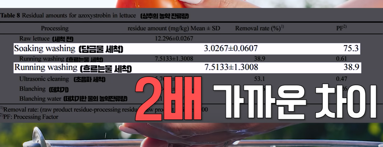 기본적으로 국립 농업과학원에서 발표한 자료에 의거하면 수돗물만으로도 90% 이상은 잔류 농략을 제거할 수 있다는 것입니다. 특히, 기존에 알고 있었던, 식초, 과일전용세제를 비교했음에도 불구하고 큰 차이를 보이지 않았다는 것입니다.
