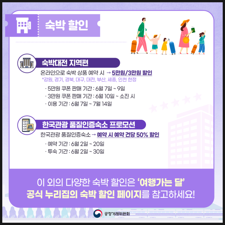 문화체육관광부, 한국관광공사에서 주관하여 국내 여행 활성화를 위하여 전국에 위치한 지방자치제와 관광업계가 협업하여 다양한 할인 혜택과 이벤트를 시행합니다.