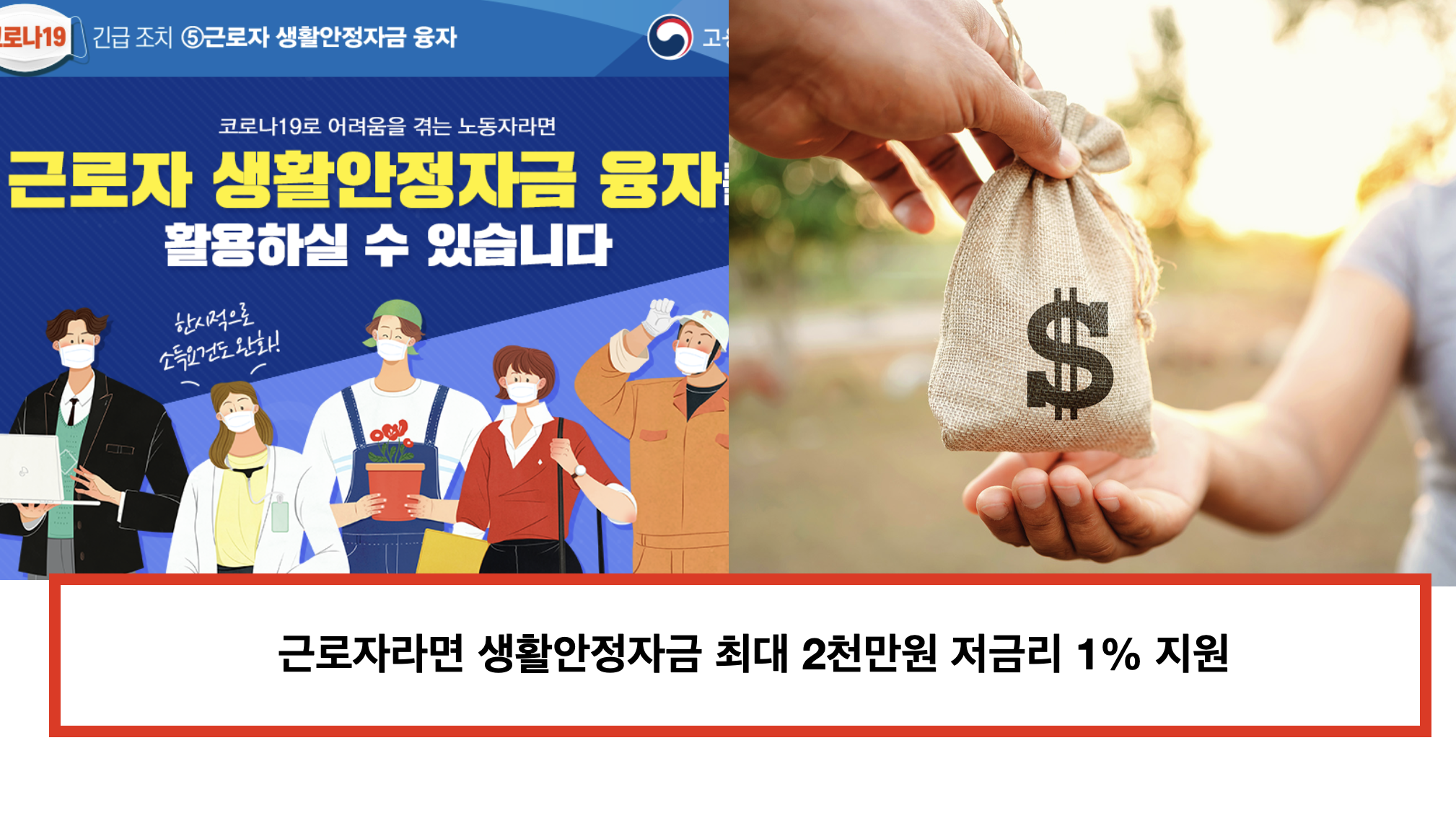 정부에서는 근로자 대상으로 생활안정자금을 목적으로 지원하는 금융 상품이 있습니다. 코로나로 인하여 2년 이상 생계 유지가 어려운 분들을 위하여 정부에서 이용할 수 있는 초저금리 상품입니다.