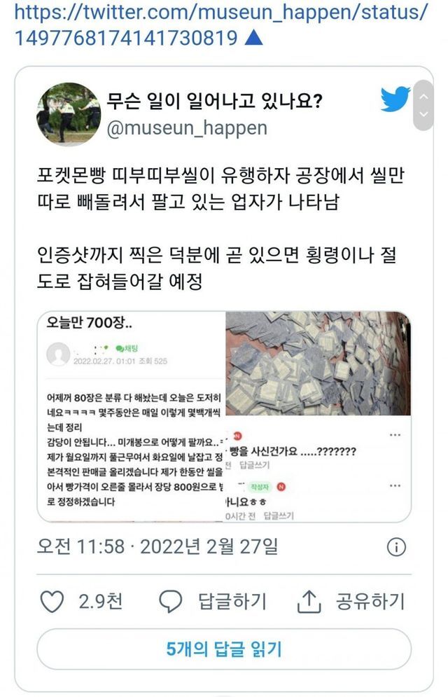 포켓몬빵에 띠부띠부씰이 없던 이유