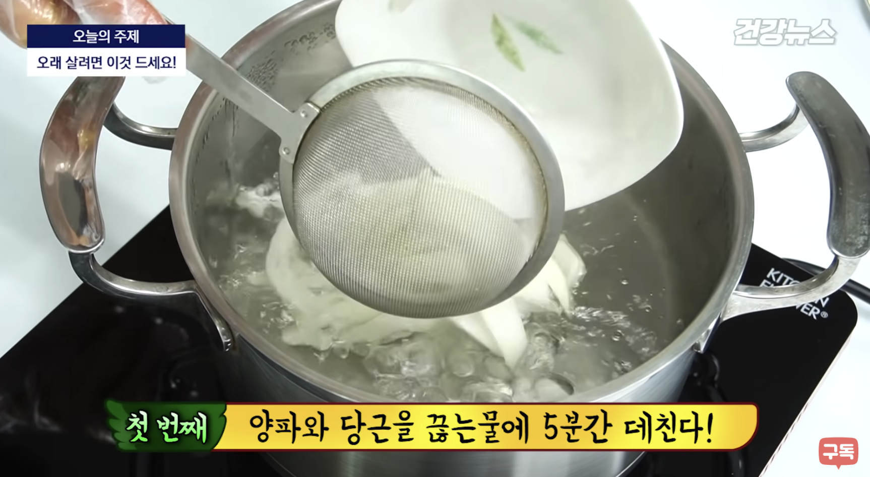 1. 양파와 당근을 끓는 물에 5분간 데칩니다.