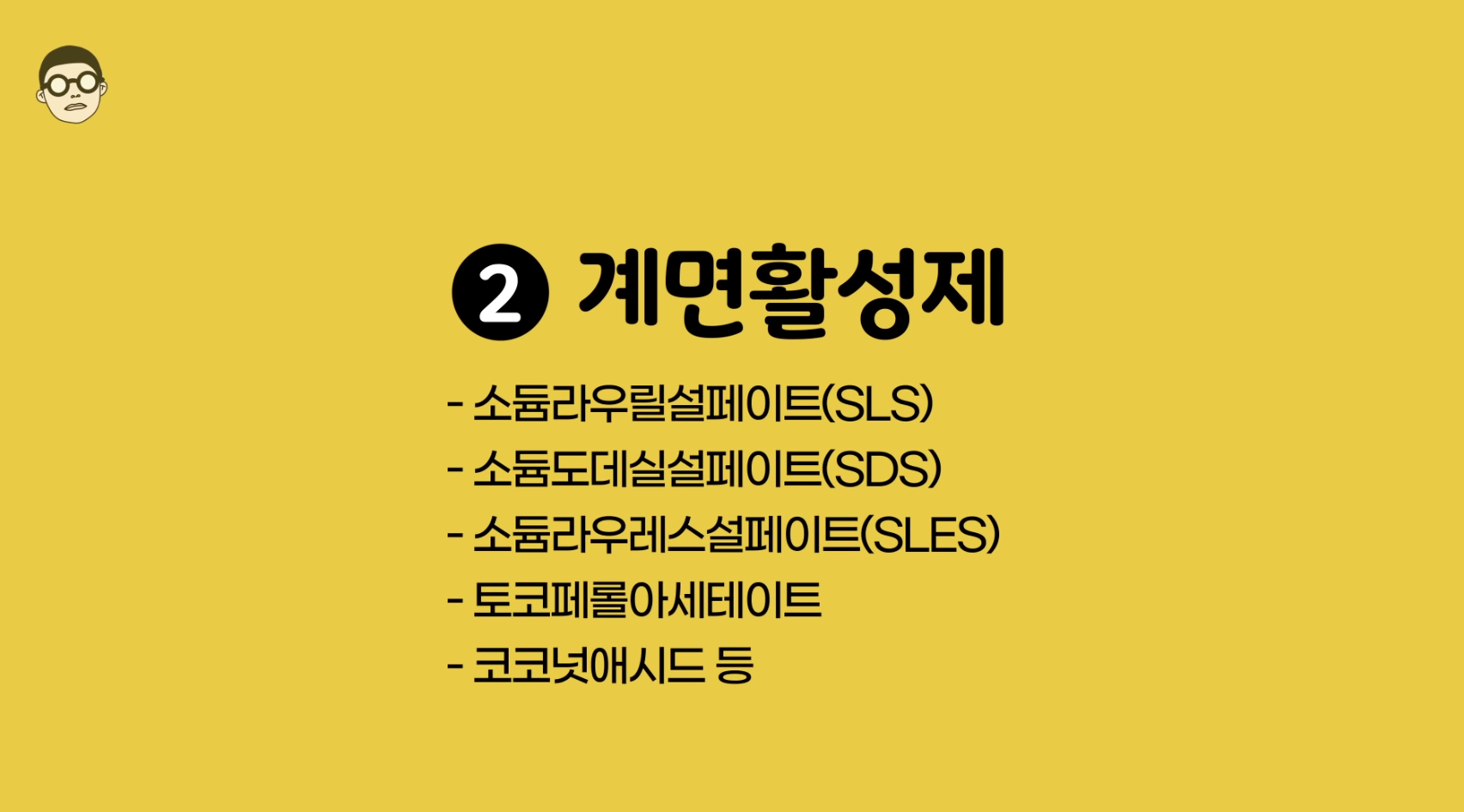 계면활성제의 성분은 소듐라우릴설페이트, 소듐도데실설페이트, 소듐라우레스설페이트, 토코페롤아세테이트, 코코넛애시드가 있습니다. 계면활성제의 역할은 물과 기름이 잘 섞이게끔 만드는 역할로 치아가 깔끔하게 닦이도록 도와주는 성분입니다.
