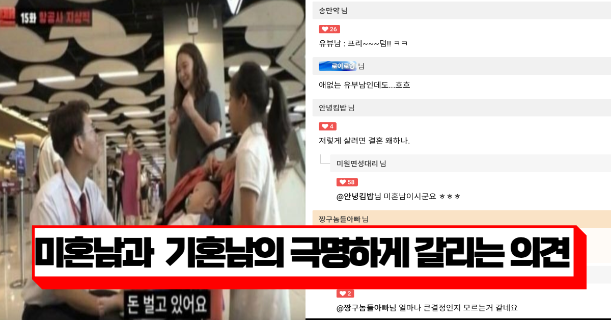 아빠 없는 가족 여행에 대한 기혼남과 미혼남 의견.JPG :: 2025 한일가왕전 투표하기