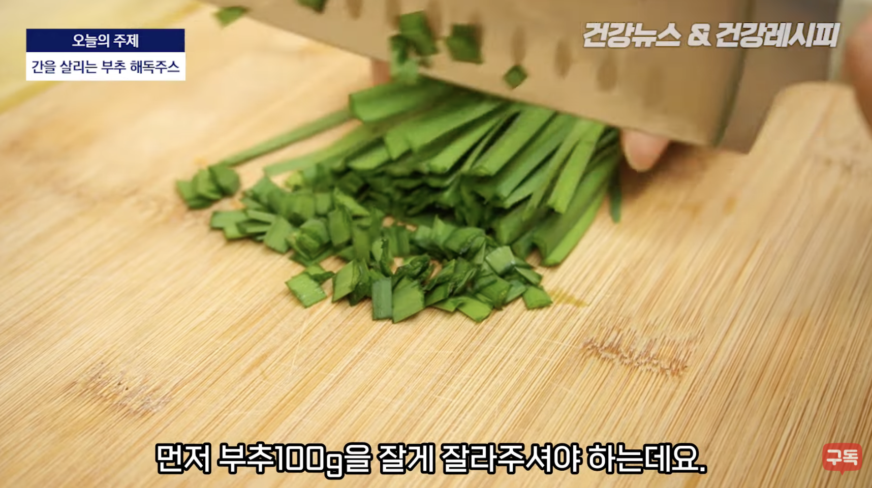 오늘 소개해드릴 재료는 1인분 기준으로 만드는 방법이며 가족 또는 지인과 함께 만들 때, 사람의 수만큼 준비하시는 것을 권해드립니다.1. 부추를 아래와 같이 잘게 짤라줘야 합니다. 부추해독주스를 먹을 때, 간편하게 먹을 수도 있겠지만 체내 흡수율을 높이는데 큰 도움이 되기 때문입니다.