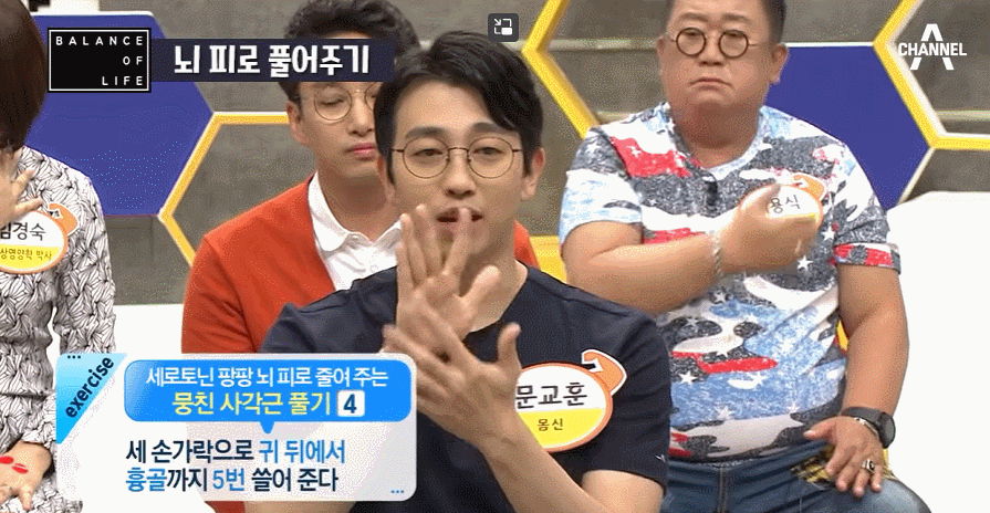 사각근은 검지와 중지를 이용하여 5초간 지긋이 눌러줍니다.