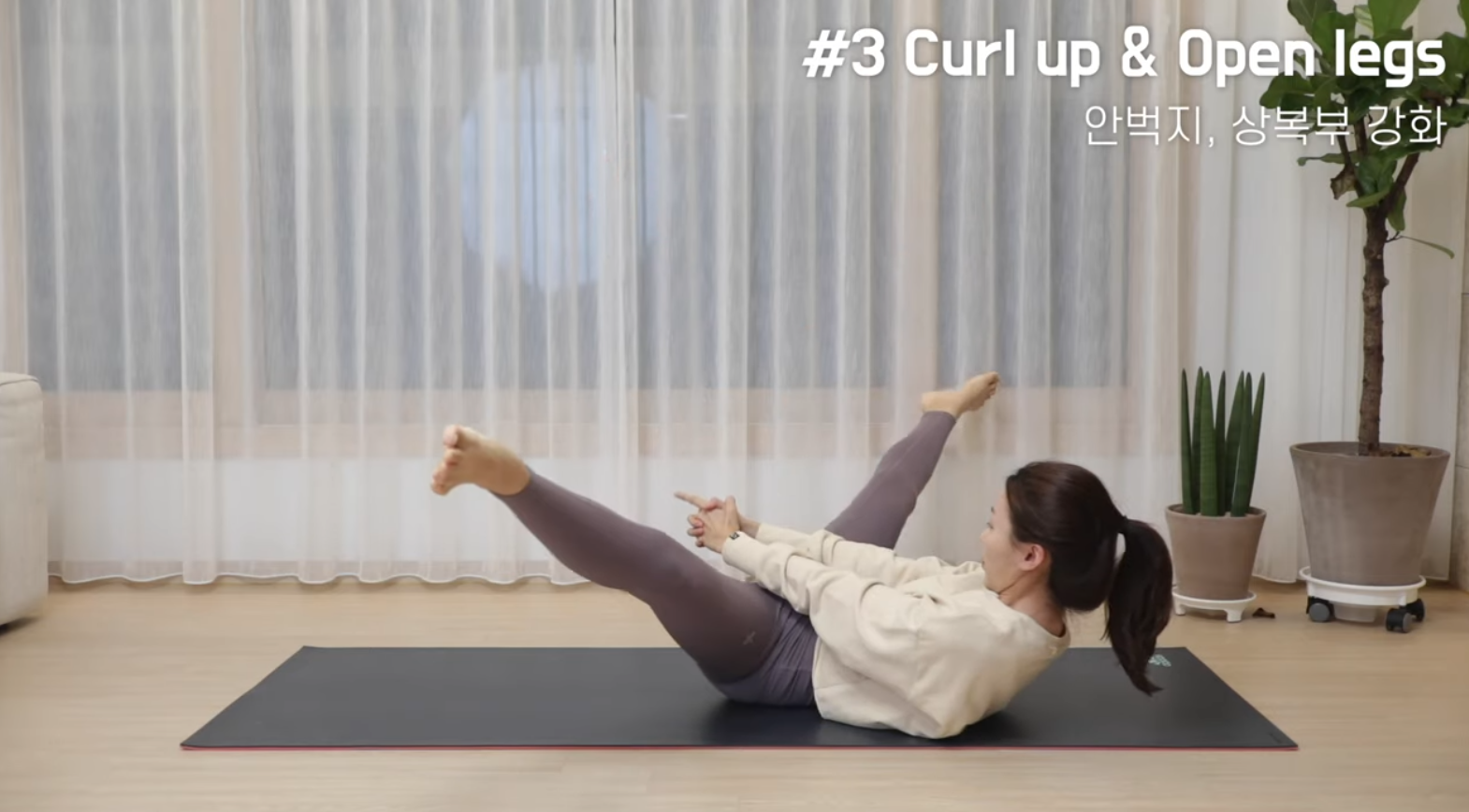 안벅지, 상복부 강화 : 웅크렸다가 다리 벌리기