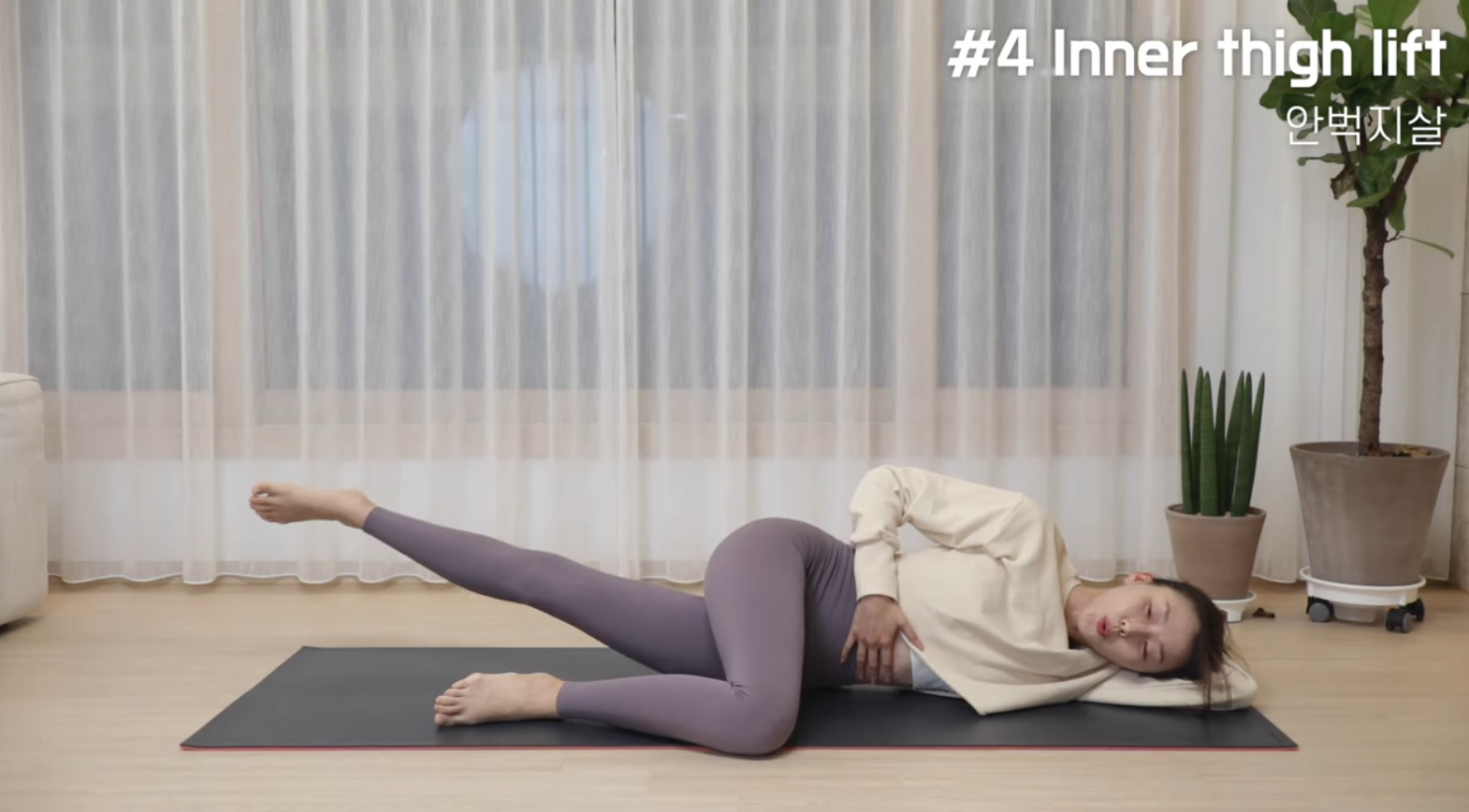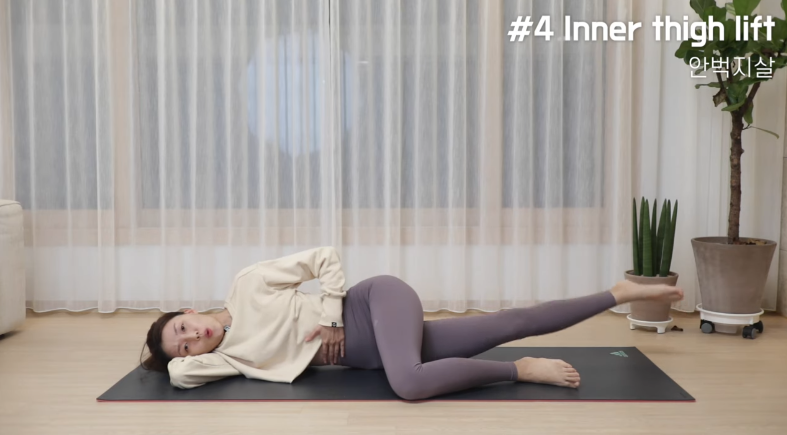 2. 안쪽 다리(뒷쪼) 다리를 수직으로 올리고 내리면서 20회를 반복합니다.