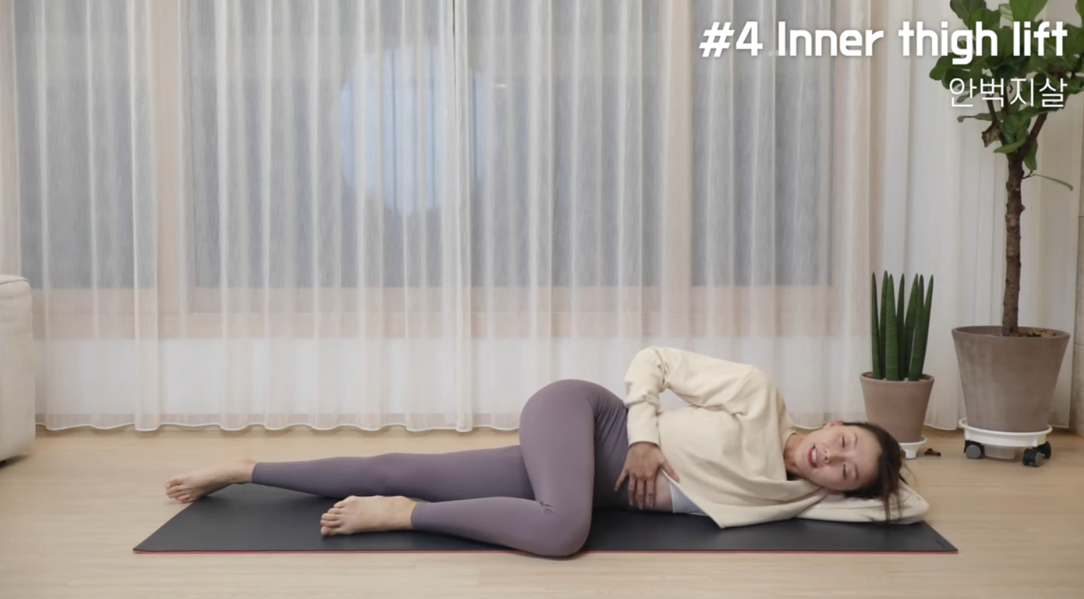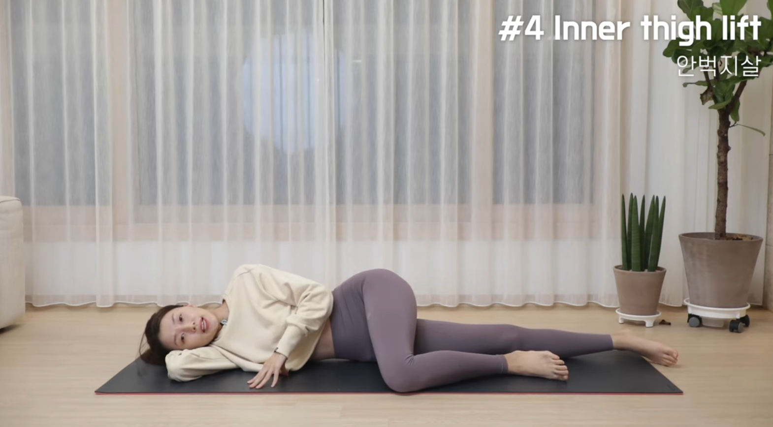 1. 옆으로 누워서 오른족 다리를 접고 앞으로 내밉니다..