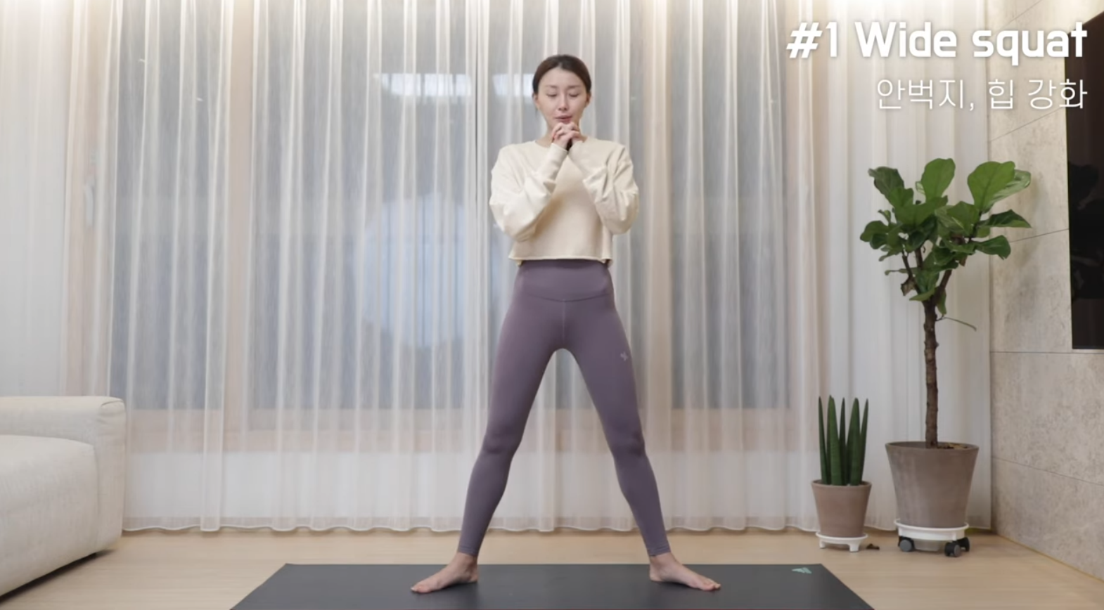 1. 발을 어깨너비보다 넓게 벌립니다.