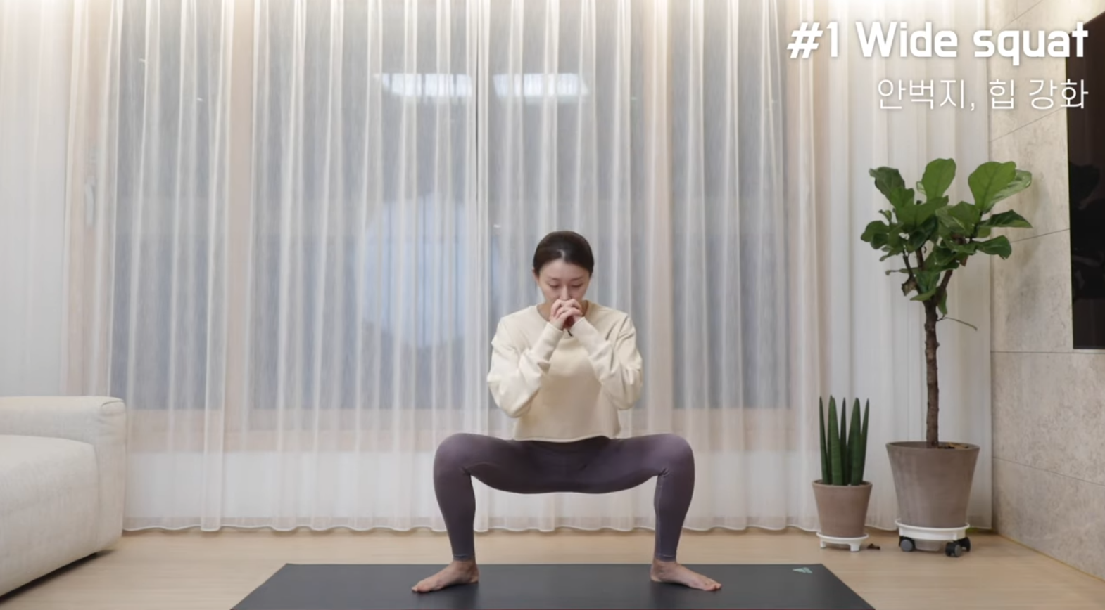 단, 다리를 벌리는 과정에서 날숨으로 진행하며 모으는 과정에서는 들숨으로 진행합니다.