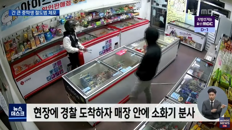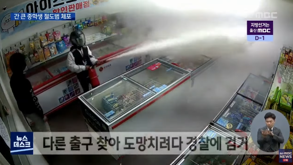 무인점포 털고 소화기 뿌리면서 탈출하는 중학생