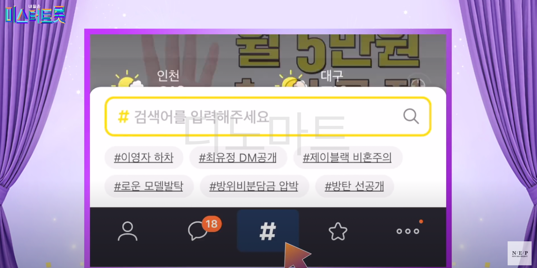 3. 3개의 점에 보이는 항목 중 "미스터트롯2 투표" 배너를 선택합니다.