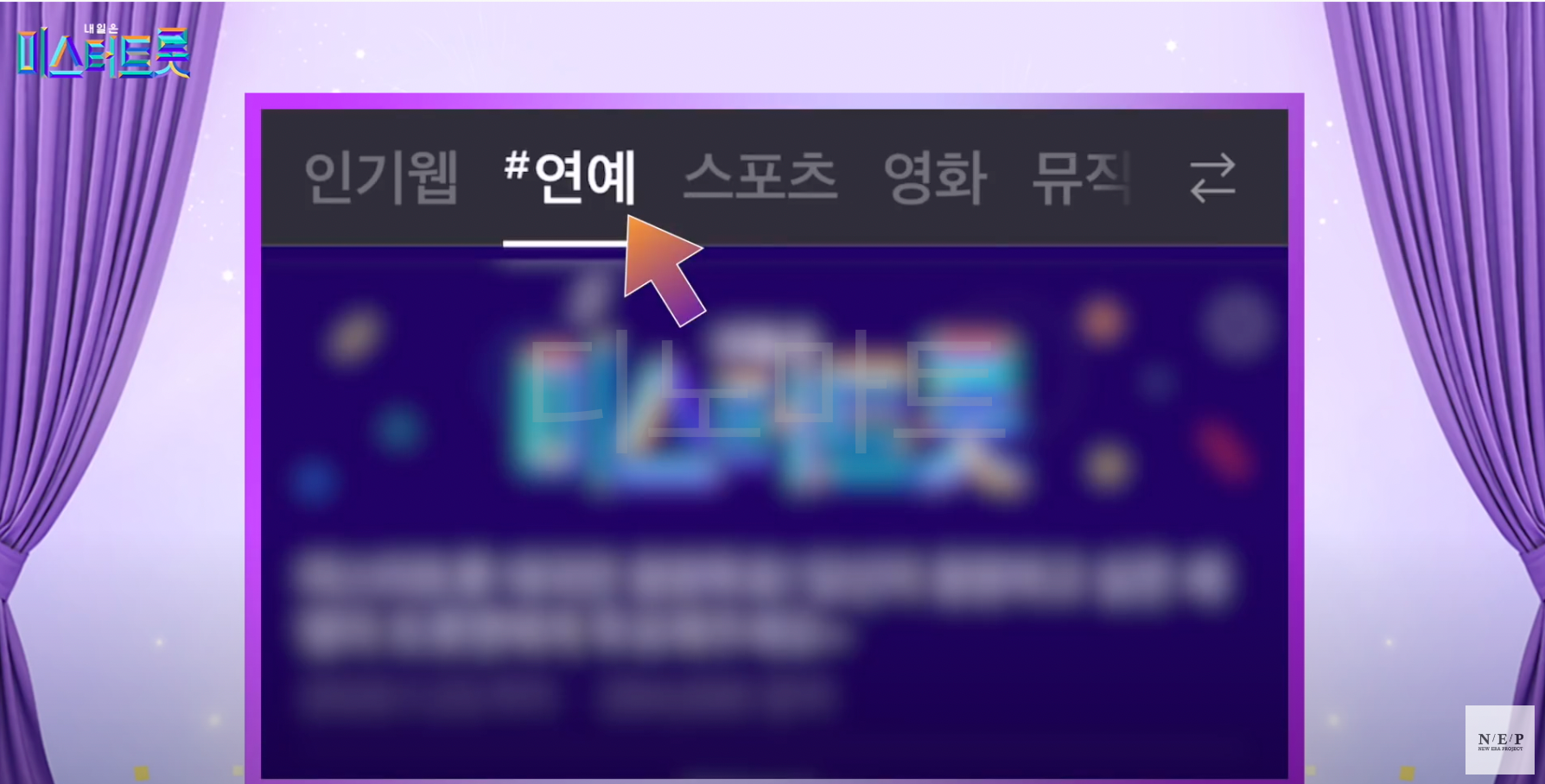 4. 연예 배너에서 "내일은 미스터트롯2"를 선택합니다.