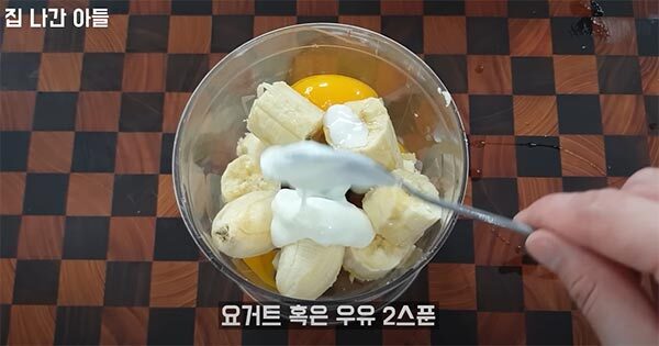 준비물 : 바나나 1개, 계란 2개, 소금 한꼬집, 우유 2스푼